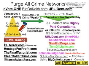 Contact BidOnKeith.com Duncan today. These are the most profound and powerful solutions to UNIFY all mankind. EVOTE.ONE below teaches all how to forever remove all criminal profiteering starting with treating all leaders as Highly Paid Consultants who are eVote told top priorities with 100% visibility of all taxes, bids, contracts, infrastructure plans, money transfers, and who profits at all levels by SERVING and PROTECTING all my 7.5 billion people. When my people 'RISE UP', trillions of $$$ will be legally seized from criminals by military + whistleblowers/victims and used to finance building new self reliant communities using SolutionHousing.com and WorldSchoolFund.com Contact Keith + Noel Nobel (63) 975-025-3500 for National TV Press Conferences, interviews, and resulting world wide summit/ Press Conferences / conclaves / meetings with top world leaders at gov, corporations, law enforcement, Military, churches, and community levels to UNIFY mankind using the prime and only arbitration solution of UnityURL.com in every village worldwide. This restores GOD's paradise of Heaven back here on Earth once all mankind fearlessly protects the rights of all others by banishing crime networks. This is with use of ChristDomain.com SolutionIslam.com = SolutionGod.com to the Glory of GOD and all Humanity.