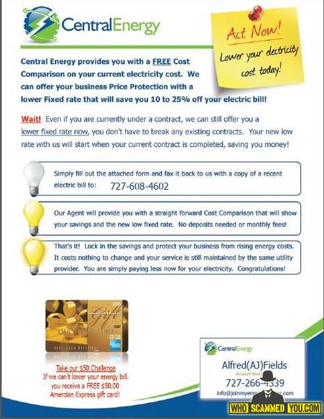 Please be careful in dealing with Alfred (AJ) Fields who claim that he can lower the cost of your electric bill by signing up with his campaign & ask for person information & businesses. He will hire people and ask to call customers in MA, NY, NJ & other parts of the state but he will never pay his hired agents. The lead information that he'll get from you will lead to identity theft & other bogus businesses. Please check his website: http://www.joinmyenergychoices.com/contact_us.php